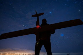 Боец ВСУ следит за дронами и ракетами в небе